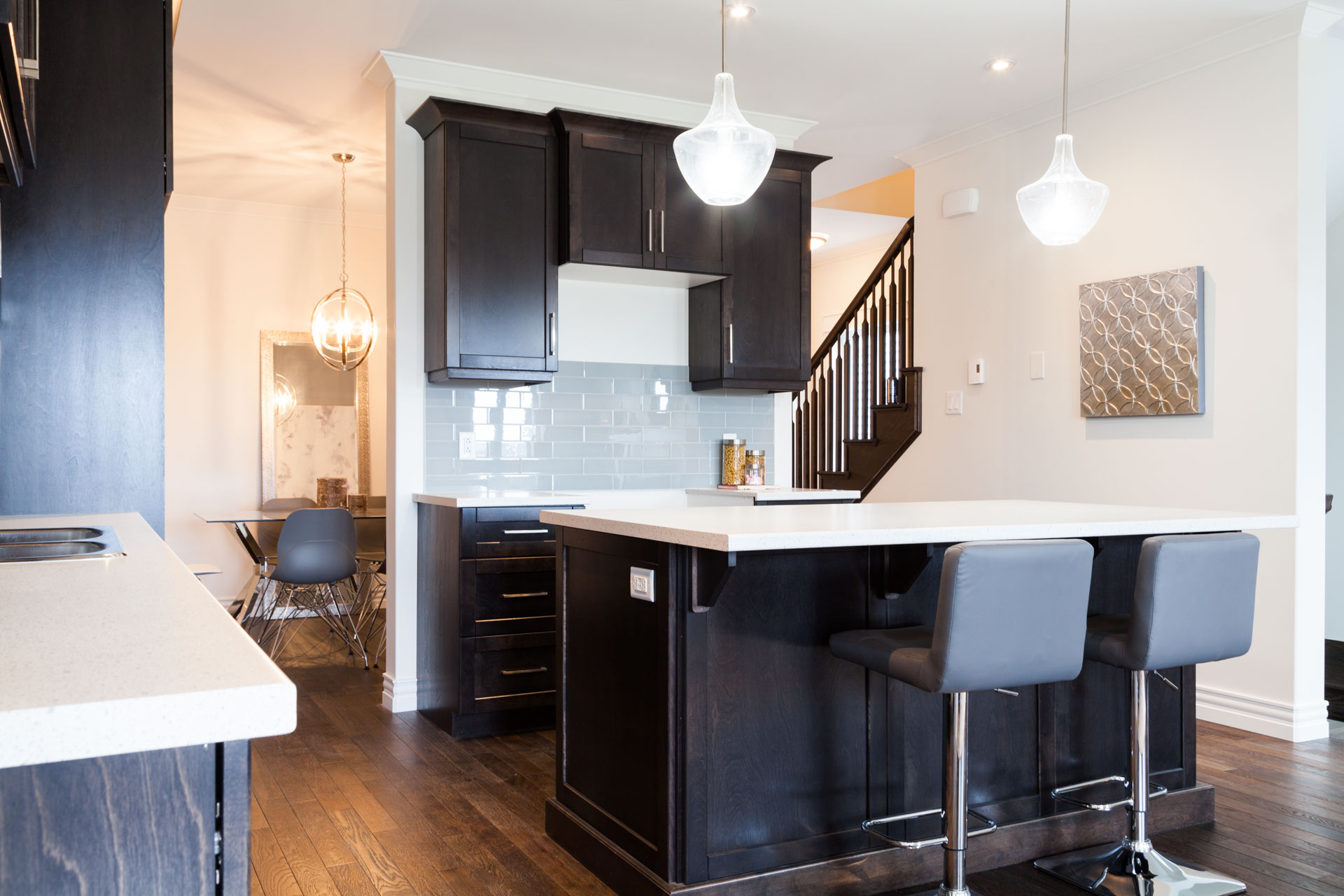 Executive 2-storey with attached garage located in the Estates at Clovelly. This home is staged and ready for viewing. With over 2000 square feet of efficiently developed space, it is sure to please. As you enter the home you are greeted to a large foyer with ceramic flooring that flows into the uniquely laid out dining/kitchen/living area. The main area will be sure to impress with upgraded wire brushed hardwood floors, a centrally located kitchen with large 4 seater island and a spacious living area that boasts a beautiful propane fireplace with mantle. As you proceed to the second floor you will find 3 spacious bedrooms, laundry room and main bath. The master bedroom houses a deep walk-in closet and a grand ensuite with soaker tub and massive custom shower. As an added bonus, the second bedroom was upgraded to contain an ensuite as well, a rare find at this price point!